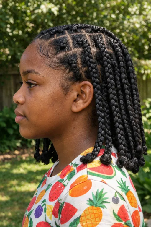 This kids’ braid bob uses larger sections, which makes the style quicker to install and easier to manage. The bob length keeps it practical, while the curled and secured ends stop it from feeling too heavy for a younger child.