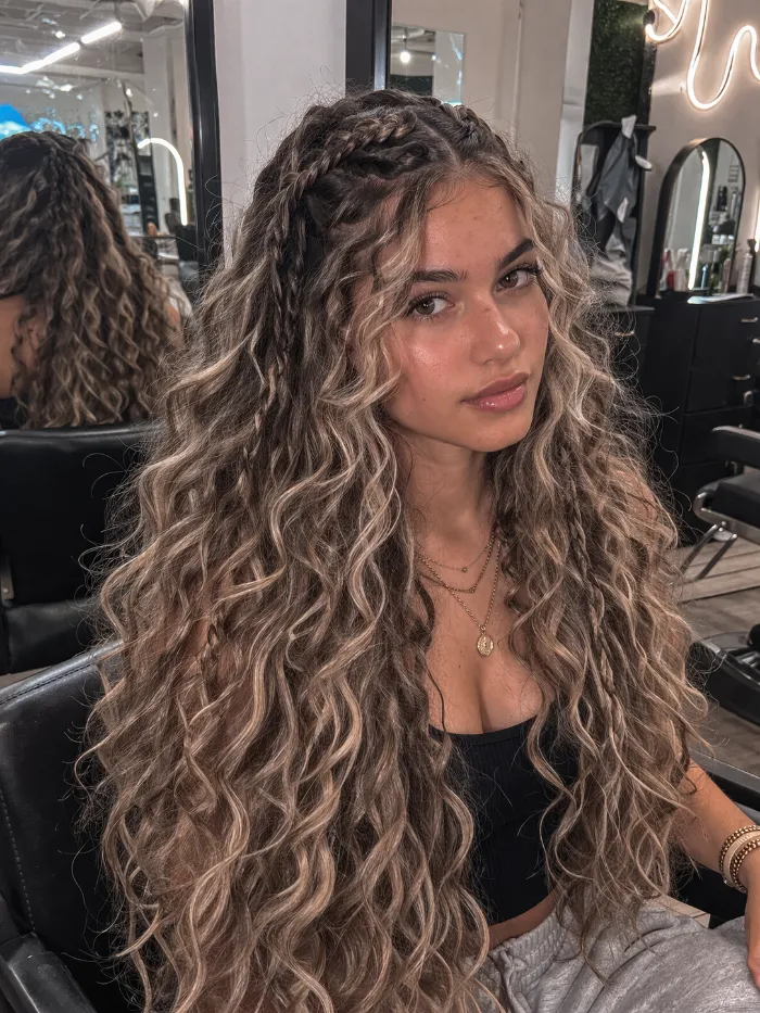 6. Curly Half-Up Braids for Girls