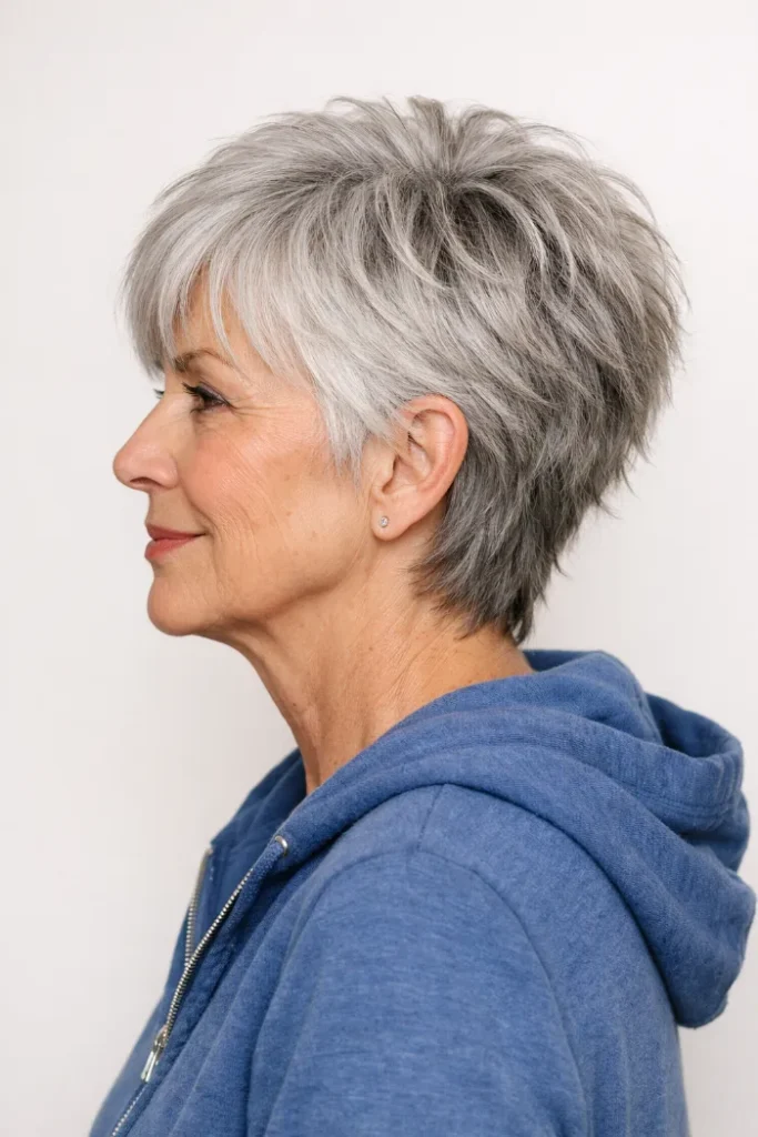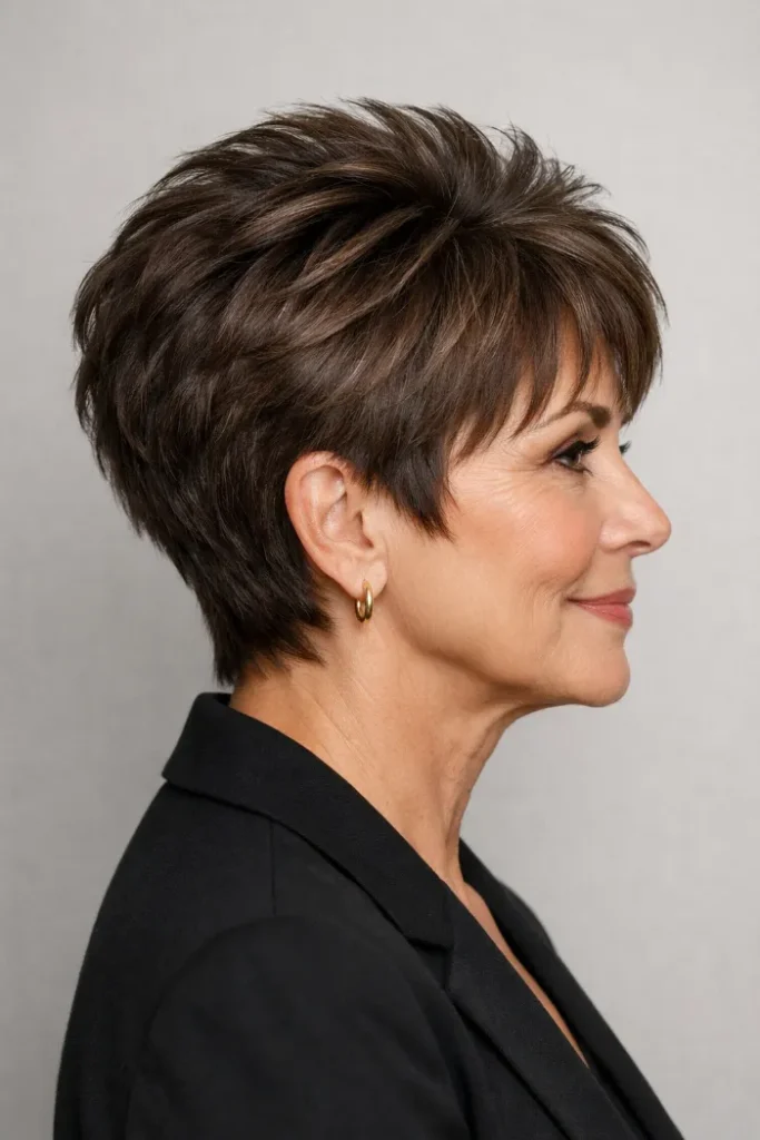 A pixie bob can do a lot with very little length. It gives you the neatness of a short cut, but still keeps enough softness to frame the face and feel feminine. That balance is a big reason so many older women come back to this shape.