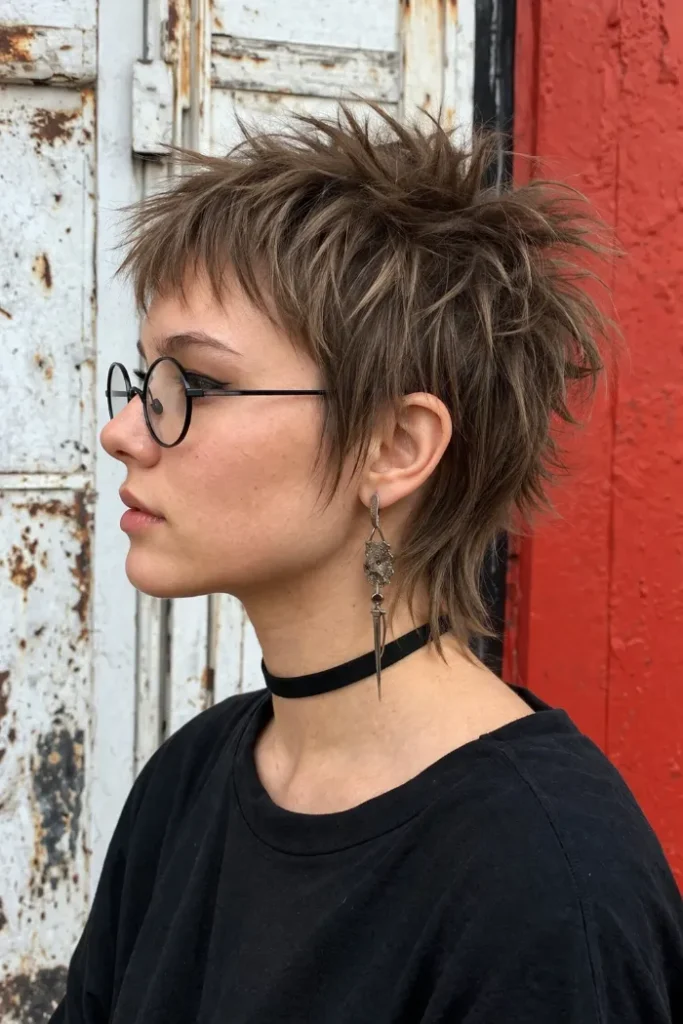8. Edgy Shaggy Pixie Mullet with Round Glasses